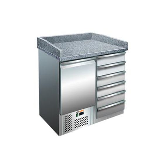 Table à pizzas réfrigérée 1 porte GN1/1 + bloc 6 tiroirs